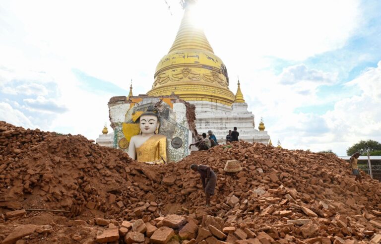 Le tremblement de terre du 28 mars a causé des dégâts considérables dans six régions, dont Naypyidaw, la capitale, et Mandalay, la deuxième plus grande ville du pays. Selon le journal officiel Global New Light of Myanmar, le bilan humain s’élève désormais à 3 740 morts et 5 104 blessés. Le travail de récupération des corps se poursuit : cette semaine encore, quatre corps ont été extraits des décombres de l’immeuble Sky Villa à Mandalay. Plus de 100 dépouilles ont été retrouvées sur ce seul site, et les autorités redoutent qu’un grand nombre de victimes soient toujours ensevelies.