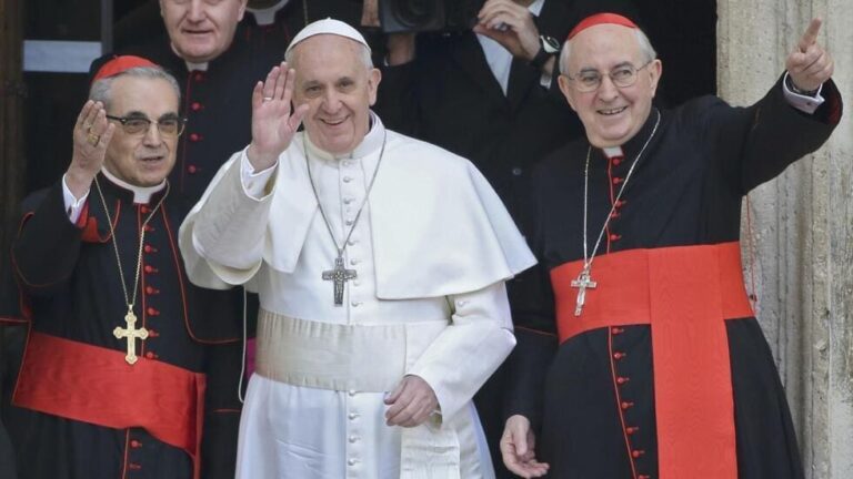 Le 13 mars 2013, Jorge Mario Bergoglio, archevêque de Buenos Aires, devient le 266ᵉ pape de l’Église catholique sous le nom de François. Il succède à Benoît XVI, qui a renoncé à sa charge le 28 février précédent, une première depuis le XVe siècle. Son élection, conclue après cinq tours de scrutin, marque une rupture historique : il est le premier pape jésuite, le premier non-européen depuis plus de 1 200 ans, et le premier à choisir le nom de François, en hommage à François d’Assise.