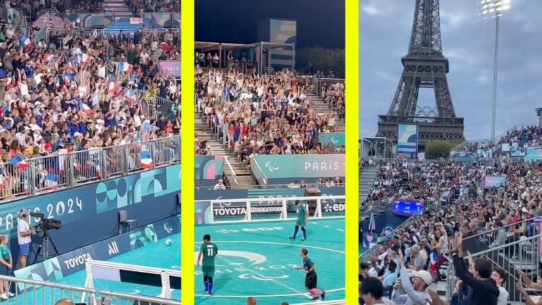 Alors que le tournoi de cécifoot de Paris 2024 bat son plein, les athlètes ont besoin du plus grand des calmes, devant la Tour Eiffel, pour sentir le jeu, écouter le ballon à grelots rouler, apprécier les distances et déceler les adversaires.