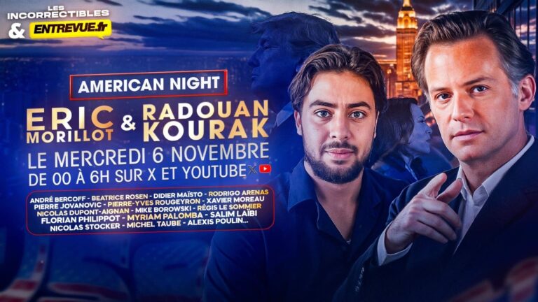 Dans la nuit du mardi au mercredi 6 novembre, de minuit à 6h du matin, une émission spéciale en direct depuis Paris et Washington sera consacrée aux élections présidentielles américaines. Cet événement inédit, intitulé « American Night », sera diffusé en direct sur les réseaux sociaux des Incorrectibles sur les plateformes X et YouTube ainsi que sur le site internet d’Entrevue. Les spectateurs auront l’opportunité de suivre cette soirée unique animée par Eric Morillot, animateur des « Incorrectibles », et Radouan Kourak, chef du service politique d’Entrevue.