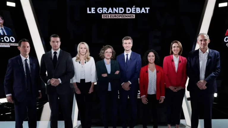 C’était leur dernier affrontement. Cinq jours avant les élections européennes, les principales têtes de liste ont débattu pendant près de deux heures mardi soir sur France 2. Après avoir présenté une photo symbolisant leur vision de l’Europe, les échanges ont rapidement tourné autour de la question migratoire, sur laquelle le ton est monté. Face à ses concurrents macroniste et socialiste, Jordan Bardella (RN) a fait savoir qu’il était « savoureux de voir monsieur Glucksmann et madame Hayer se battre pour savoir qui est le plus immigrationniste des deux ».