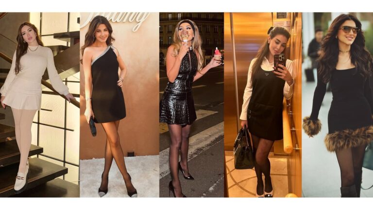 Les chaussettes à la mode cet hiver Les célébrités optent pour des chaussettes noires dans différents styles, allant des transparentes en maille aux versions décorées, qu’elles portent avec des robes et des jupes courtes. En revanche, les chaussettes sportives restent un choix incontournable pour les tenues quotidiennes et sportives.