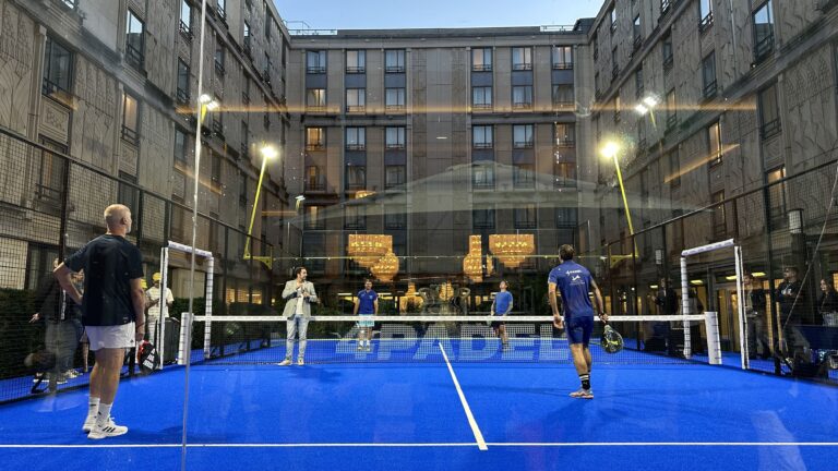 4Padel s’est associé à cet hôtel parisien pour offrir un terrain de jeu unique. Taper la balle au beau milieu d’un 5 étoiles est assez déroutant. Puis on s’y fait. Et on y prend goût. Même si jouer en extérieur en ce moment à Paris relève de l’exploit… Sortez les parapluies.