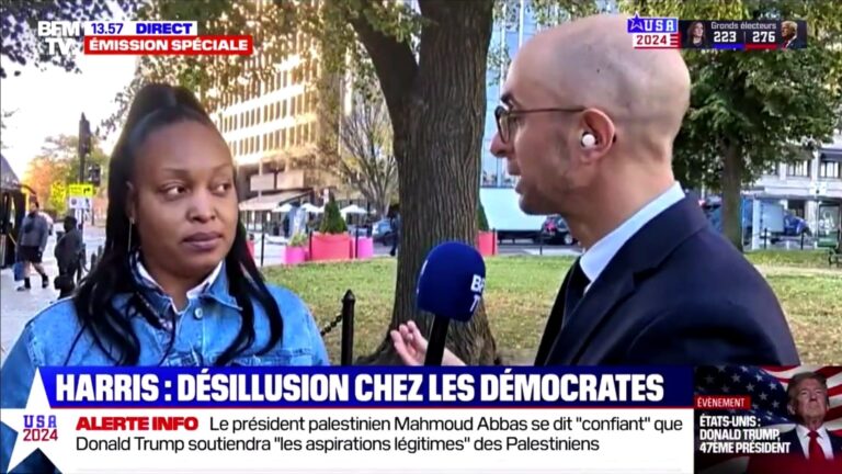 Si les Républicains et les soutiens de Donald Trump font la fête, l’heure est à la gueule de bois pour les partisans de Kamala Harris. Ce midi, BFM TV est allée à la rencontre de Michelle, qui avait voté pour la candidat démocrate. Cette dernière s’est dit déçue, affirmant que l’Amérique n’était peut-être pas encore prête à élire une femme noire américaine.