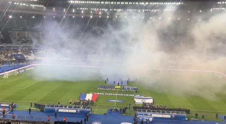 Par ailleurs, des spectateurs ont brandi trois drapeaux palestiniens en fin de match, tandis que l’hymne israélien avait été hué en début de rencontre. Ces incidents n’ont toutefois pas dégénéré, et aucun blessé n’est à déplorer.