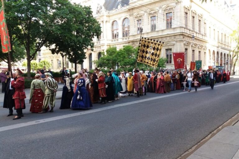 Déjà chargé en vieilles pierres, le quartier du 5ᵉ arrondissement prend carrément un coup de quatre siècles dans les gencives. L’événement s’ouvre samedi par un défilé bigarré partant de la place Bellecour à 11h30, traversant la Presqu’île et le pont Bonaparte, pour s’achever sur la place Saint-Jean. Là, artisans, marchands d’épices, faiseurs d’arbalètes et vendeurs de colifichets installent leurs échoppes. Mais les réjouissances démarrent dès jeudi avec une partie d’échecs vivante place des Terreaux et une marche solennelle jusqu’à l’hôtel de ville, où les Pennons — ces anciens miliciens bourgeois reconvertis en animateurs de patrimoine — seront reçus par le maire, probablement sans épée.