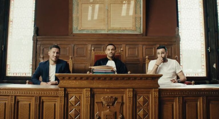 Malik Bentalha à la barre. Dans un rôle de juge, l’humoriste nous emmène au tribunal et accueille les ex-joueurs de football Eden Hazard et Adil Rami (appelé « Antonio Rudiger », le défenseur du Real Madrid qu’il a souvent critiqué) pour analyser les meilleurs attaquants.