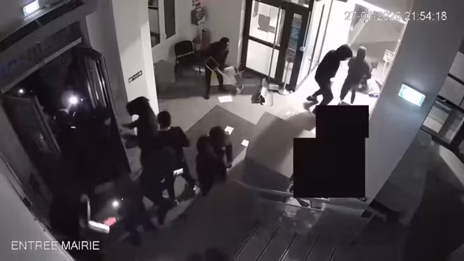 Sur des images de vidéosurveillance diffusées sur X par le ministre de la Ville et du Logement, Vincent Jeanbrun, on distingue une dizaine d’individus encagoulés devant puis à l’intérieur du bâtiment, l’un d’eux tirant un mortier d’artifice en direction de la porte d’entrée. Moins d’une minute. Suffisant pour laisser une mairie cabossée.