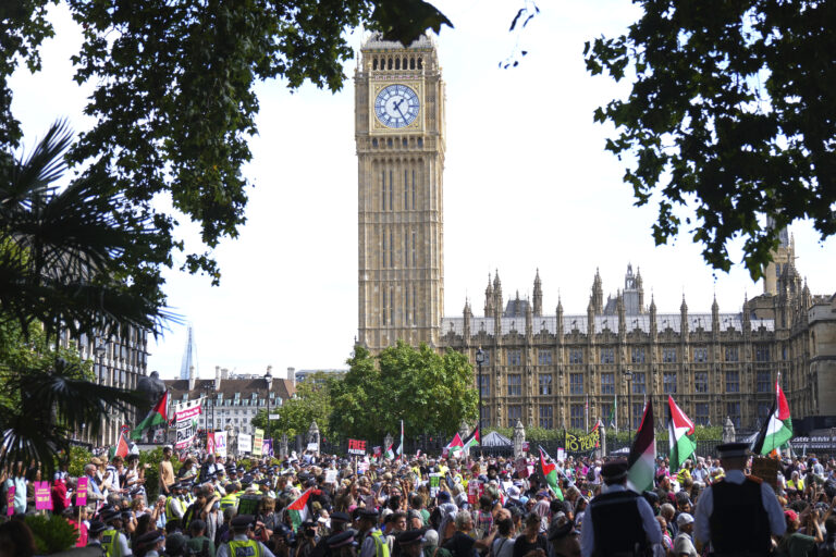 Le Royaume-Uni, le Canada et l’Australie reconnaissent officiellement l’État de Palestine. (AP/Joanna Chan)
