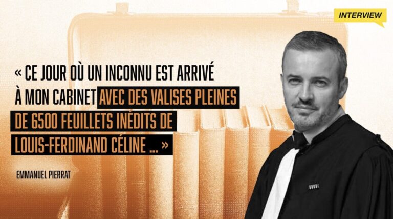 Ténor du barreau, auteur d’une œuvre considérable – plus de 120 ouvrages publiés – ancien conservateur du musée du barreau de Paris, Emmanuel Pierrat se retrouve lié à l’affaire des manuscrits oubliés de Louis-Ferdinand Céline, quand en 2020, un inconnu, un certain Jean-Pierre Thibaudat débarque à son cabinet avec des valises pleines de papiers. Il en tirera un livre L’affaire Céline, l’incroyable histoire des manuscrits retrouvés (Écriture 2024). Il revient pour Entrevue sur les dessous de cette affaire.
