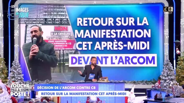 Cet après-midi à 14h00, avait lieu une manifestation à Paris contre la censure de C8, devant le siège de l’Arcom. Cet événement avait lieu en présence de Cyril Hanouna et Radouan Kourak, chef du service politique d’Entrevue. Ce soir, dans TPMP!, Cyril Hanouna a tenu à remercier Omar Harfouch, propriétaire d’Entrevue et contributeur de l’événement, ainsi que Radouan, présent à cette manifestation, déclarant :