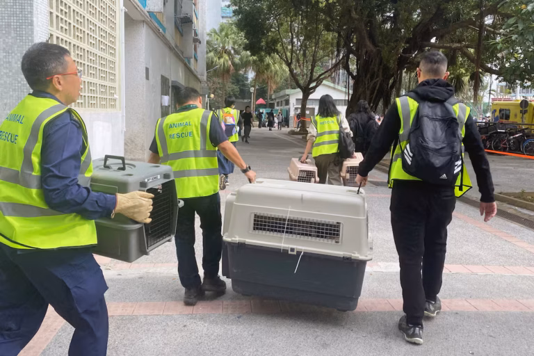 Alors que les pompiers poursuivaient leurs recherches toute la nuit dans le complexe résidentiel Wang Fuk Court, ravagé par un incendie d’une rare violence, un autre groupe d’intervenants s’est activé dans l’ombre : des volontaires venus sauver les animaux domestiques abandonnés dans la panique. Leur mission, menée en parallèle des opérations de secours, vise à retrouver et secourir les chiens, chats et autres compagnons laissés derrière eux par des habitants fuyant pour sauver leur vie.