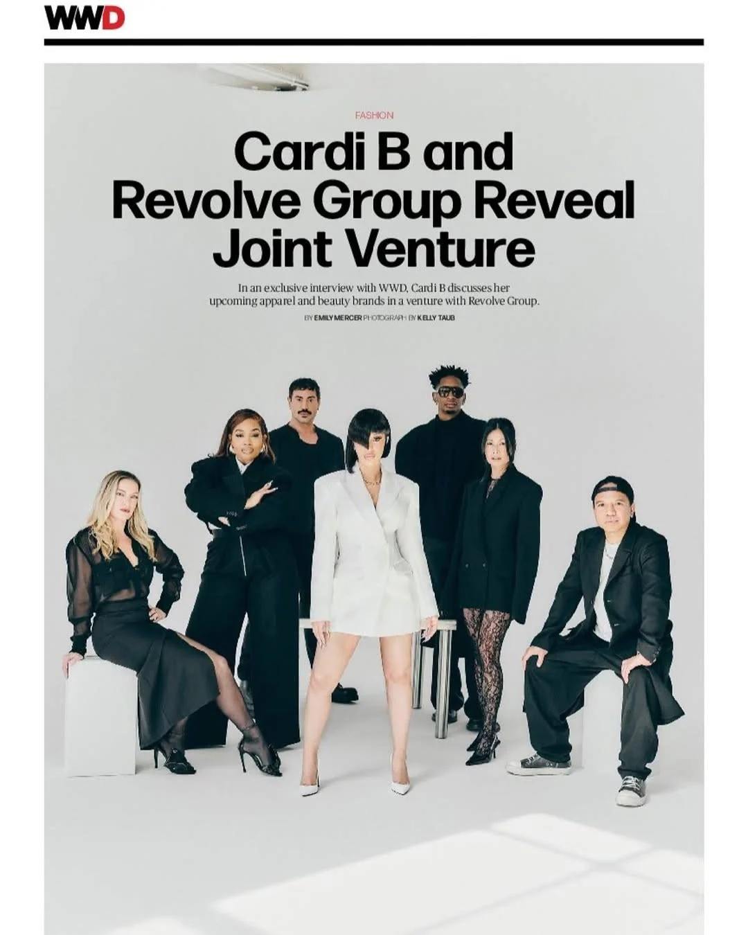 Cardi B a choisi une robe élégante de couleur blanche, au design simple, sous forme de blazer long avec des boutons latéraux. Cette robe marque sa première apparition officielle dans le cadre de sa nouvelle collection de mode en collaboration avec la marque « Revolve ». De plus, la rappeuse lancera une ligne de produits de beauté dans le cadre de ce partenariat.