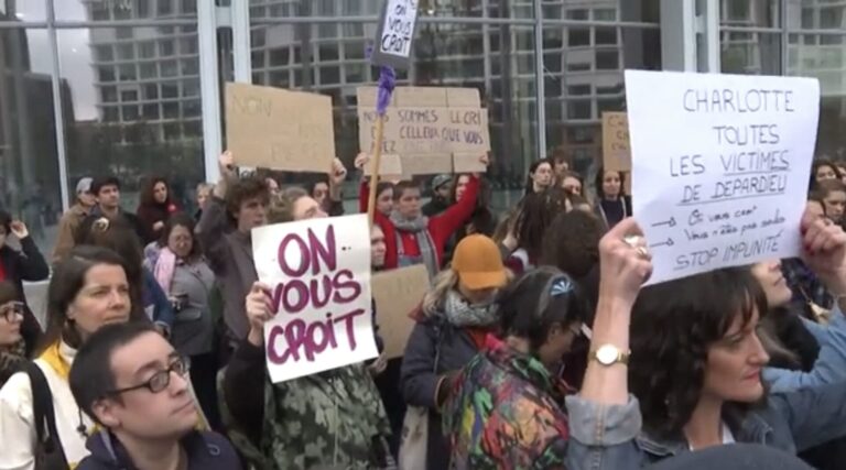 Des militantes féministes se sont rassemblées aujourd’hui devant le Tribunal judiciaire de Paris en soutien aux victimes présumées de Gérard Depardieu, dont le procès pour agressions sexuelles s’est ouvert ce lundi. Les manifestantes, issues d’associations féministes et du milieu politique, ont scandé des slogans tels que “Victimes, on vous croit, violeurs, on vous voit” pour exprimer leur solidarité envers les plaignantes.