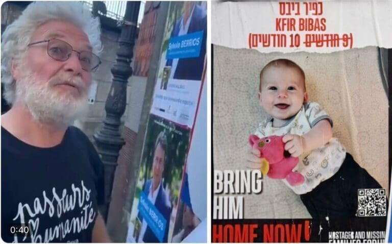 Dans une vidéo dévoilée sur Twitter et devenue virale, on le voit devant un panneau d’affichage, tracts du Nouveau Front Populaire en mains, en train de déchirer des affiches pour la libération des otages israéliens. En l’occurrence, il s’agit de Kfir Bibas, le plus jeune otage israélien détenu par le Hamas, un bébé âgé de moins de neuf mois lorsqu’il a été arraché de son lit le 7 octobre dans le kibboutz de Nir Oz. Aujourd’hui, il a tout juste 17 mois.