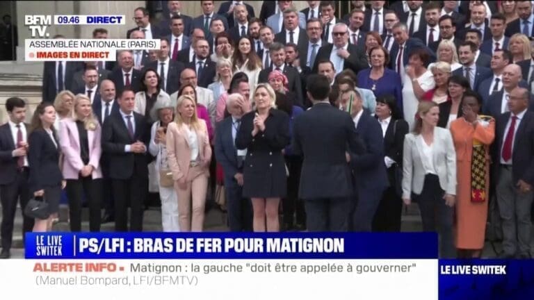 La patronne du Rassemblement National a ensuite évoqué la volonté de certains élus du Nouveau Front Populaire qui souhaitent « marcher sur Matignon » afin d’imposer un Premier Ministre issu de leurs rangs. Une idée lancée par Adrien Quatennens sur les réseaux sociaux. « C’est leur assaut du Capitole à eux », a-t-elle commenté. « Mais c’est à Emmanuel Macron d’assumer cela car c’est lui qui les a fait élire. »