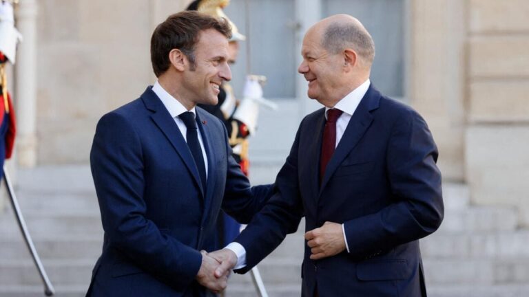 Ce mercredi 22 janvier, Emmanuel Macron accueille Olaf Scholz à l’Élysée pour un déjeuner symbolique à l’occasion du 62ᵉ anniversaire du Traité de l’Élysée. À un mois des législatives allemandes du 23 février, cette rencontre marque l’un des derniers échanges bilatéraux entre les deux dirigeants avant un possible changement de leadership en Allemagne, où Friedrich Merz, favori des sondages, pourrait succéder à Scholz.