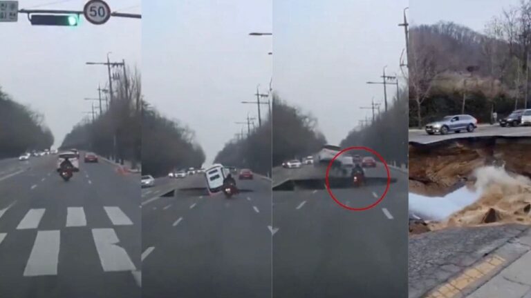 Englouti par un trou béant dans la chaussée. Un accident arrivé si soudainement. C’est le triste destin de cet homme en scooter à Séoul (Corée du sud), ce mardi. Les images sont impressionnantes. Les raisons de cette déflagration sont encore inconnues.