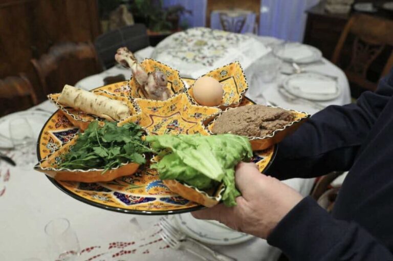 Le premier soir de la fête est marqué par le séder, un repas ritualisé riche en symboles. Autour d’un plateau traditionnel, les convives consomment divers aliments rappelant la dureté de l’esclavage : herbes amères, pain azyme (matsa), os d’agneau, œuf dur ou encore une pâte sucrée nommée haroset. Chaque ingrédient raconte un aspect du récit biblique, lu à voix haute à partir de la Haggadah. Les enfants y jouent un rôle clé en posant les « quatre questions », renforçant ainsi la transmission intergénérationnelle.