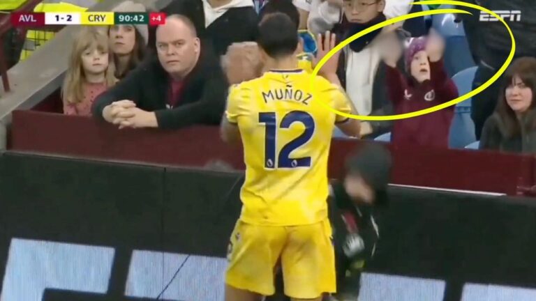 Dans les arrêts de jeu de cette rencontre dominée par le Palace de Jean-Christophe Mateta, Daniel Munoz prend le temps de s’excuser après avoir failli renverser un ramasseur de balle. Le latéral colombien prend alors le temps de lever les mains devant le public, pour bien montrer qu’il ne l’a pas fait exprès.