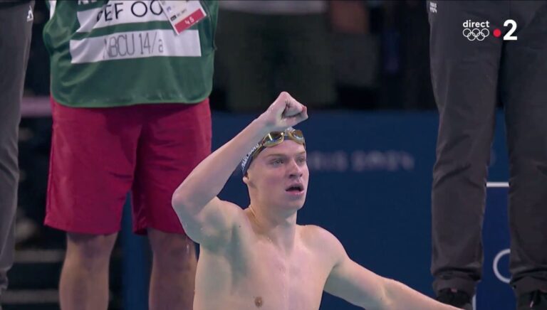 Revivez l’exploit de Léon Marchand en vidéo et son interview au micro de Nelson Monfort