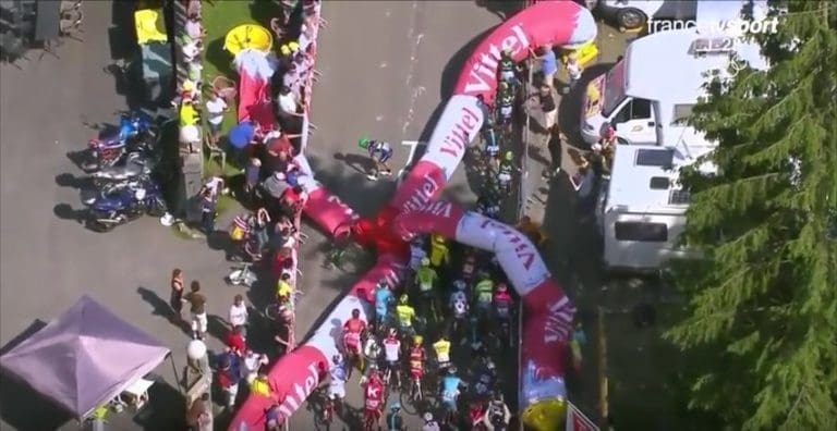 C’est un accident rare qui s’est produit ce vendredi 8 juillet sur le Tour de France ! Le vainqueur de l’étape du jour, Steven Cummings, vainqueur du jour, était déjà en train de fêter son succès quand la grande arche gonflable marquant le dernier kilomètre s’est dégonflée et s’est effondrée juste avant le passage du peloton des favoris. Le Britannique Adam Yates a chuté dans l’incident et a terminé la course avec le menton en sang. Après l’arrivée, il s’est fait poser des points de suture. Les autres favoris ont dû poser pied à terre et ont réussi à se frayer un passage au compte-gouttes sous l’arche dégonflée.