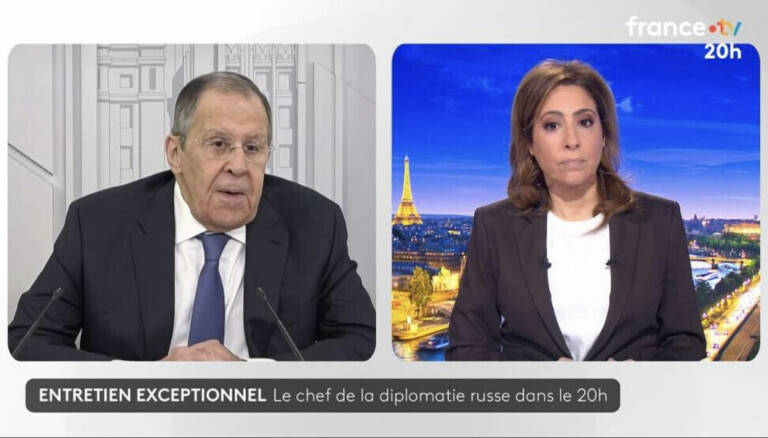 L’entretien avait été annoncé par France Télévisions comme une interview exclusive de Sergueï Lavrov, avec une version intégrale disponible en ligne. Réalisée à distance avec le ministre russe depuis Moscou et enregistrée à l’avance, la séquence a donné lieu à environ dix minutes diffusées dans le JT de France 2, tandis qu’une version longue d’une heure a été mise en ligne en complément. L’extrait diffusé au 20 heures a réuni 3,4 millions de téléspectateurs.